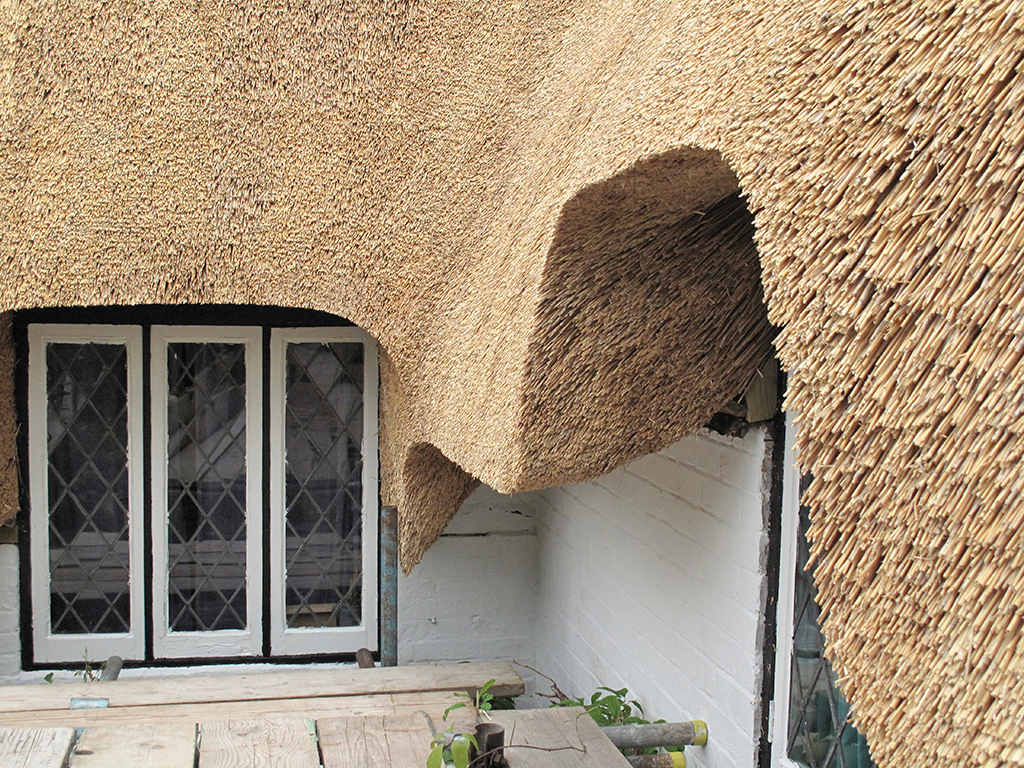 Eave detail of cottage in Crow which was re-thatched in water reed