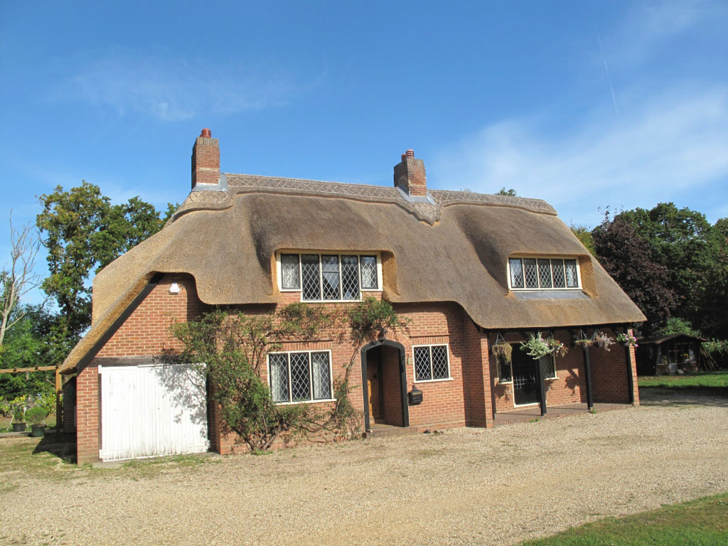 A property completely re-thatched in water reed with block turnover pattern ridge